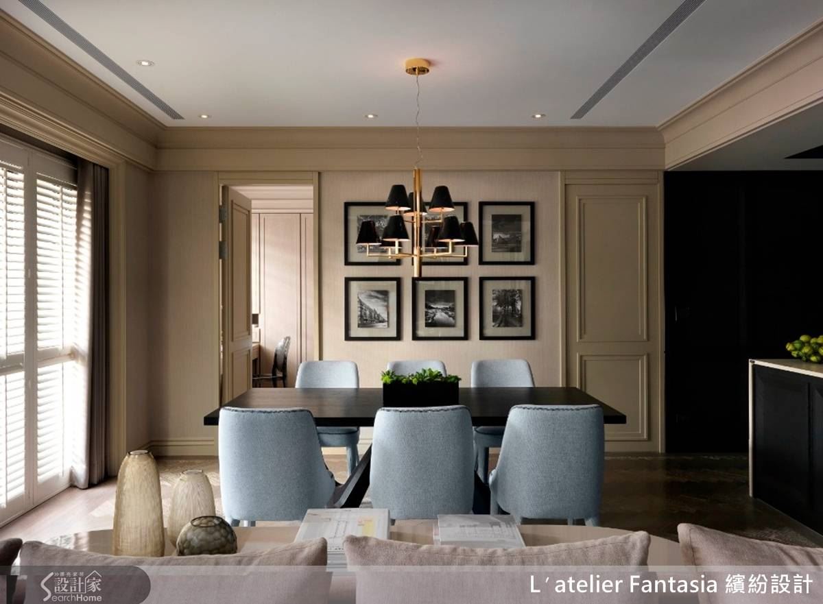屋主希望餐廳旁的這面主牆,成為家族歷史的記憶,各式收藏與珍愛的照片,都能自由展示在其中,簡單的利用暖橘色作為背景,搭配可移動的軌道燈,所有的佈置,都能隨時間與心情更換。