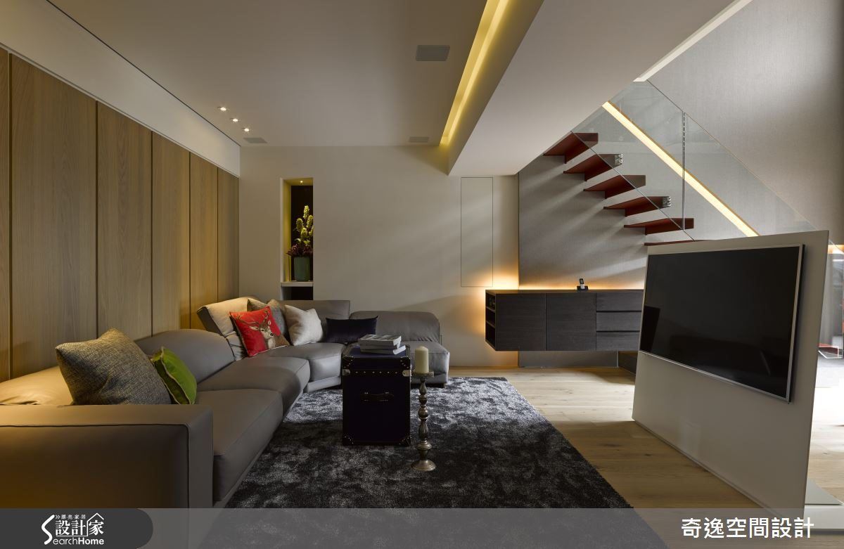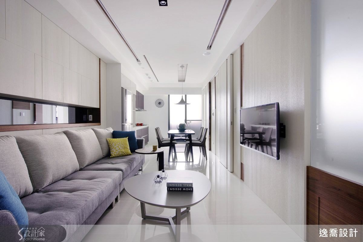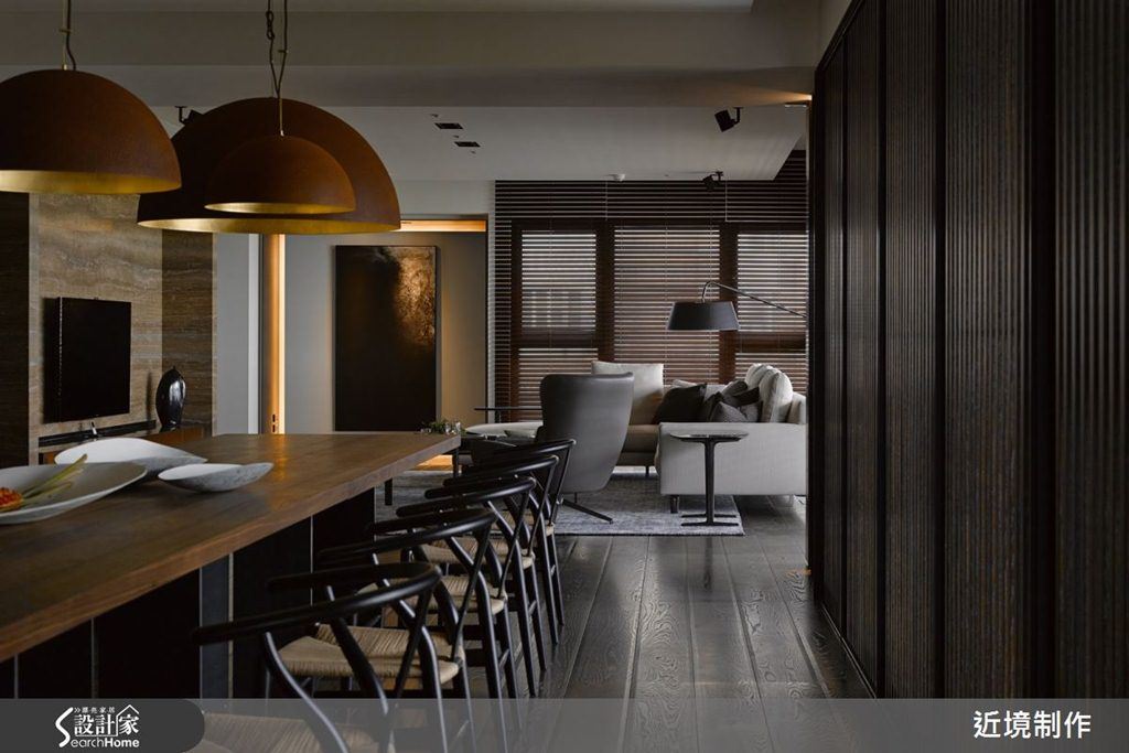 此案原本也有大門正對落地窗的風水疑慮,于設計師同樣利用端景牆手法,以格柵搭配毛玻璃加以化解。不必大動格局也能達到效果。