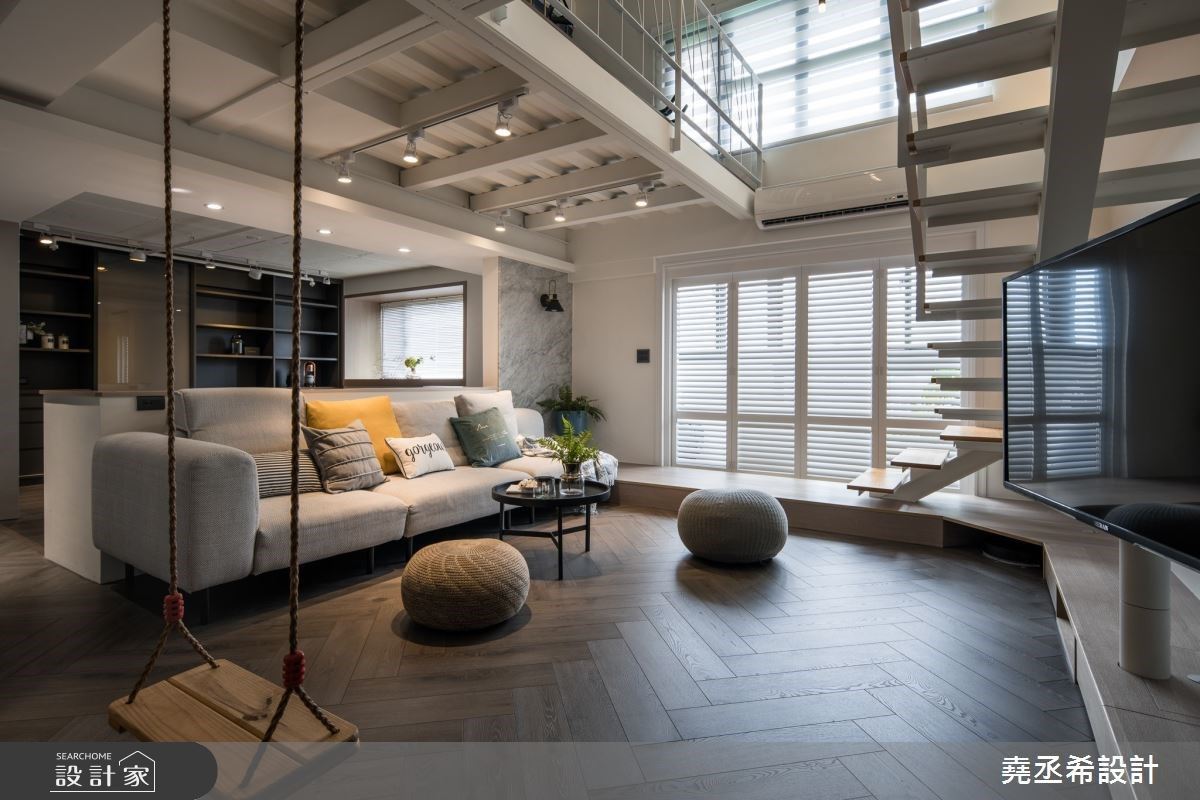 座落於新竹縣竹北區的 65 坪新成屋,設計師將其樓中樓
