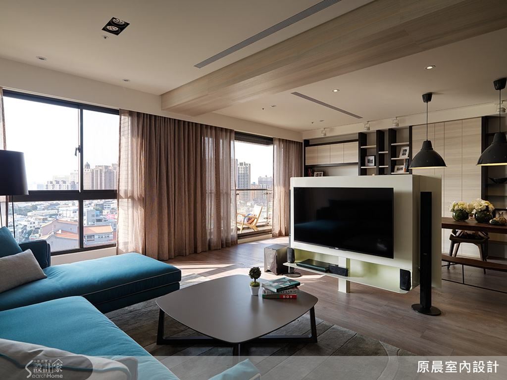 客、餐廳之間的電視牆採半高規劃,打造延伸且通透的居家視野,並讓餐廳身兼麻將桌主題,使一家人可在交流情感之餘,也共享採光與景致;並巧思布置窗簾,配置透光窗簾或風琴簾等,給與居者最舒適的生活體驗。