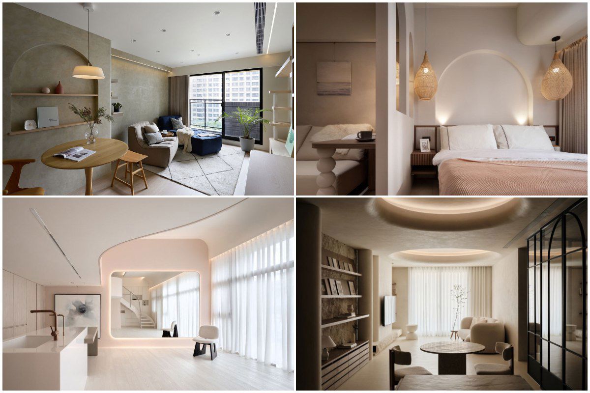 走進客廳,全室以柔和的輕淺色彩作為基調,透過鵝黃色漆料、白色文化石等鋪陳牆面,引入質樸風味,並讓電視牆兩側保留透空,作為通往陽台或臥室的出入口,使公私內外連結更為緊密且各自獨立,同時選配不少繽紛軟件,以提升居家彩度;尤其一幅大面積書牆,更形成居家的絕美風景畫面,讓沙發、書牆之間構成一處開放書房場域,並於窗邊配置書桌椅,營造明亮清爽的閱讀氛圍;餐廚領域則採開放規劃,讓吧檯連結櫃體,打造出極簡的用餐場域,使木作格柵元素從天花延伸到屏風,注入穿透溫潤的空間美感;主臥床頭牆加入了大地色彩,搭配格子床單形成無印風格,並使床頭高度連結書桌平台,勾勒出整齊的線性美感;次臥牆面則規劃櫥窗般的格狀空間,將公仔家飾等陳列其中,使牆面多了幾分展示藝術的旨趣!