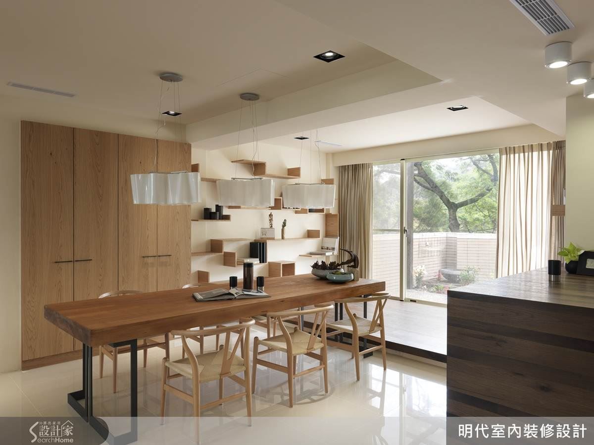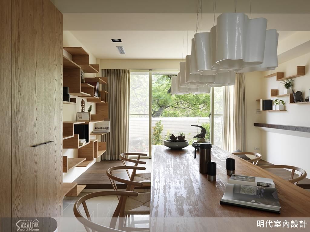 另外,因應父親的閱讀習慣,客廳旁邊就是開放式書房,當家人全員到齊,沒有多餘空間休憩時,書房一側的落地窗簾設計則提供隱私性,餐廳則和閱讀空間安排在同一區域,客廳、交誼廳、書房和餐廳,四方空間串聯互動,不僅讓空間的使用綽有餘裕,也達到延展開闊的視覺效果。