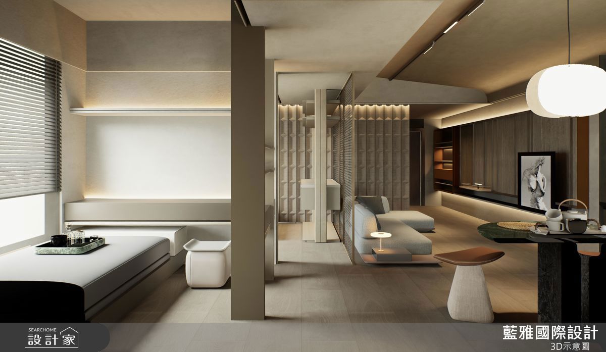 書房以落地玻璃作為與客廳區域的間隔,藉由透亮的玻璃面使視覺上更顯延伸,整體亦有更加寬闊的效果!