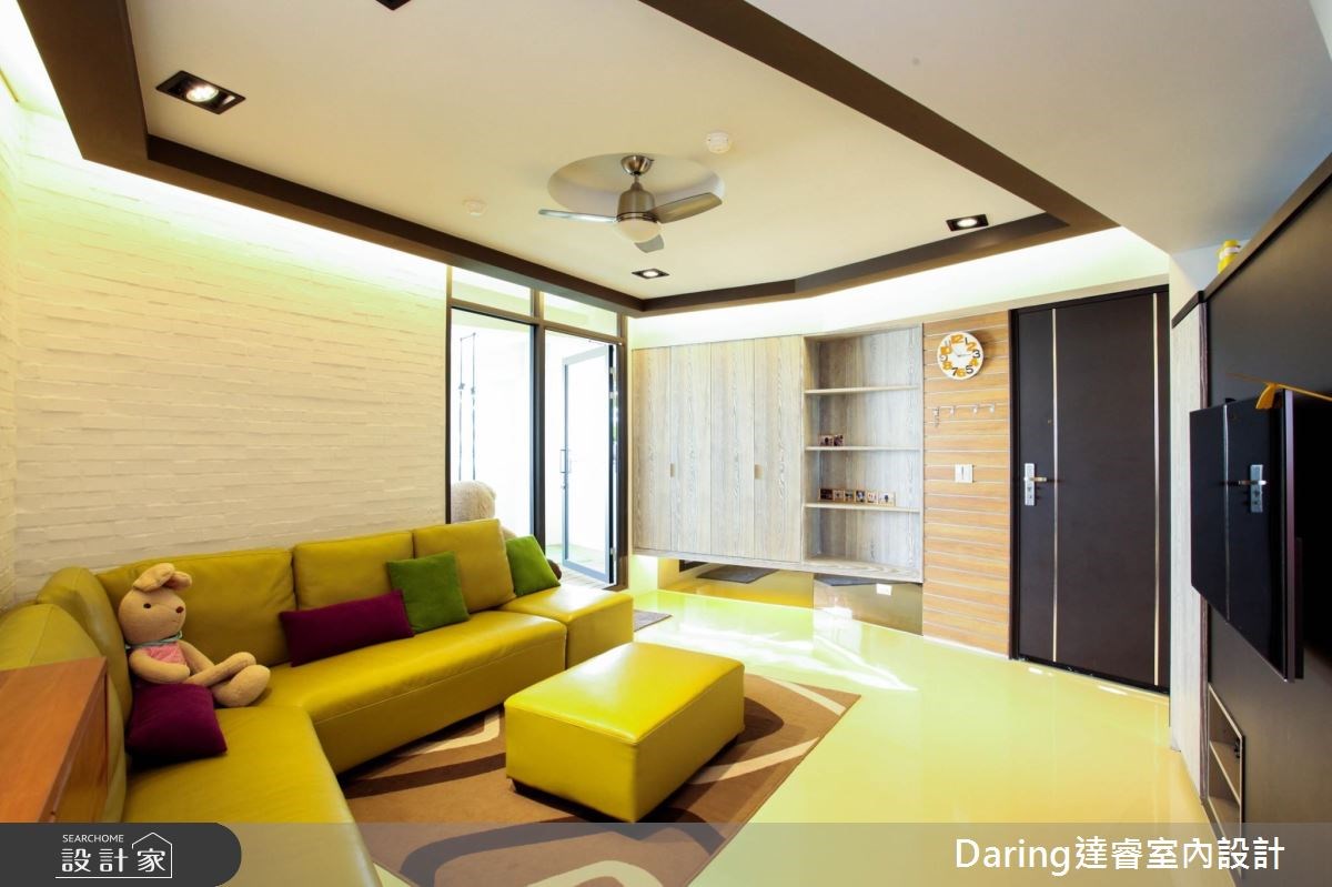 沿著木階往 2F 方向即是屋主一家三口的居處,餐區與客廳採取開放式設計,以達有效地運用空間,延續 1F 的暖木質調,適當地融入復古綠的家飾點綴,明亮、活潑的氛圍使屋主在結束忙碌的一天後,回到自家能好好地放鬆一下。