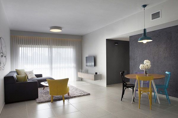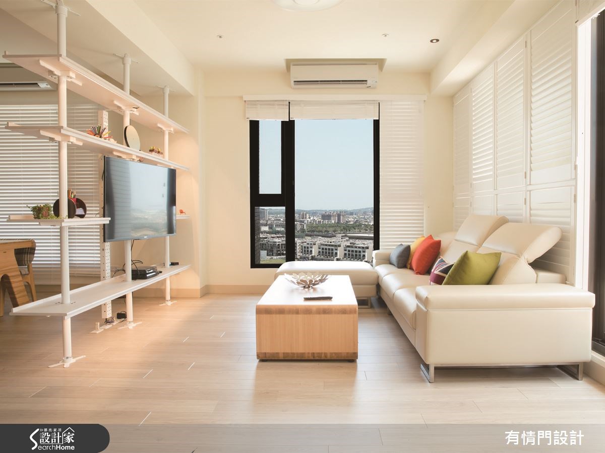 座落於台北市,原本為三房格局的 28 坪新成屋,屋內空間以一個 360 度旋轉的液晶電視柱為中心軸向外發散,並界定出客廳、餐廳分野,設計師利用節省預算和工時的輕裝修,以簡單的材質變換及色彩鮮明的單品,營造出專屬一家 3 口既現代又時尚的生活風格。