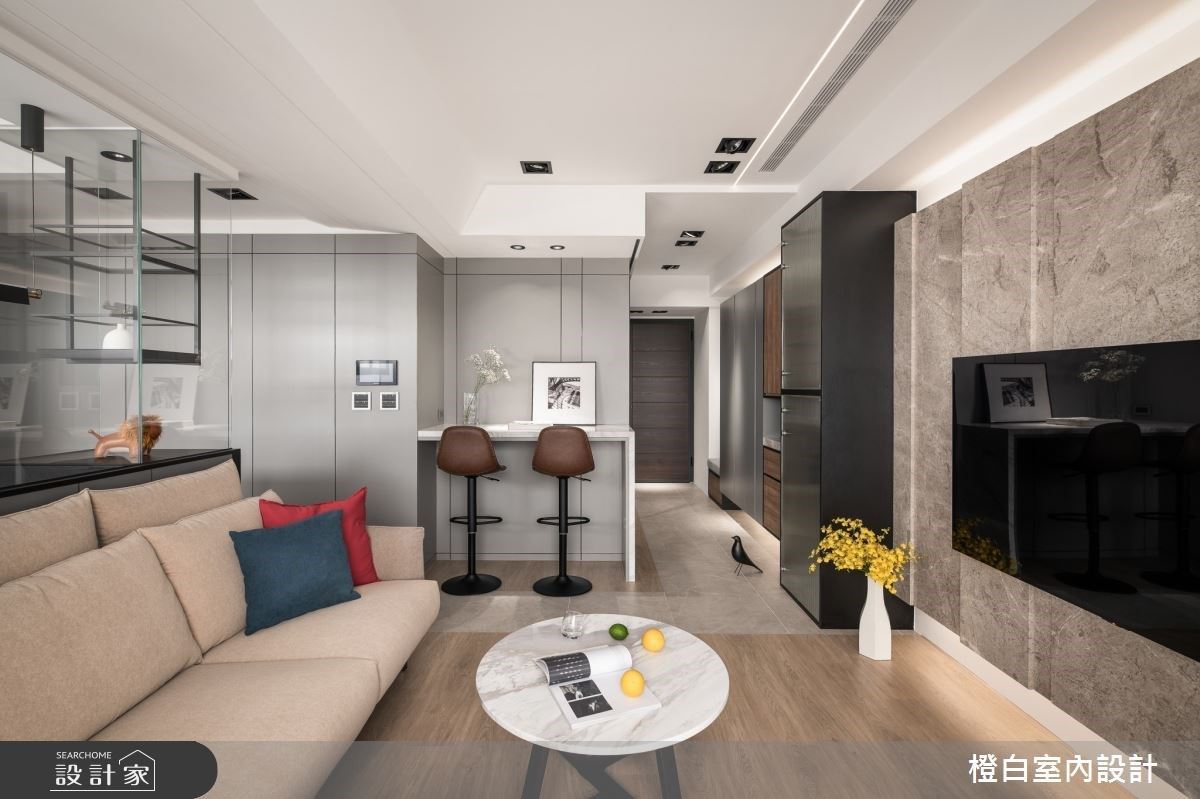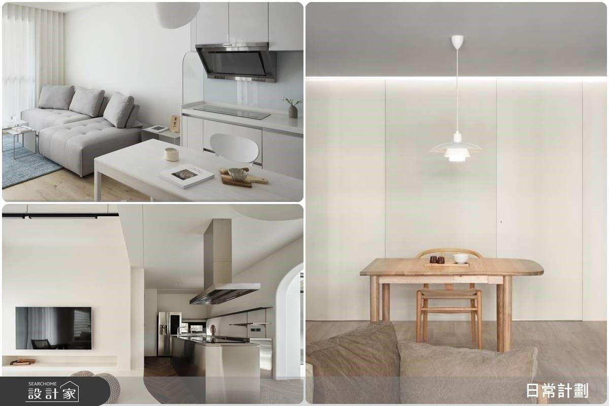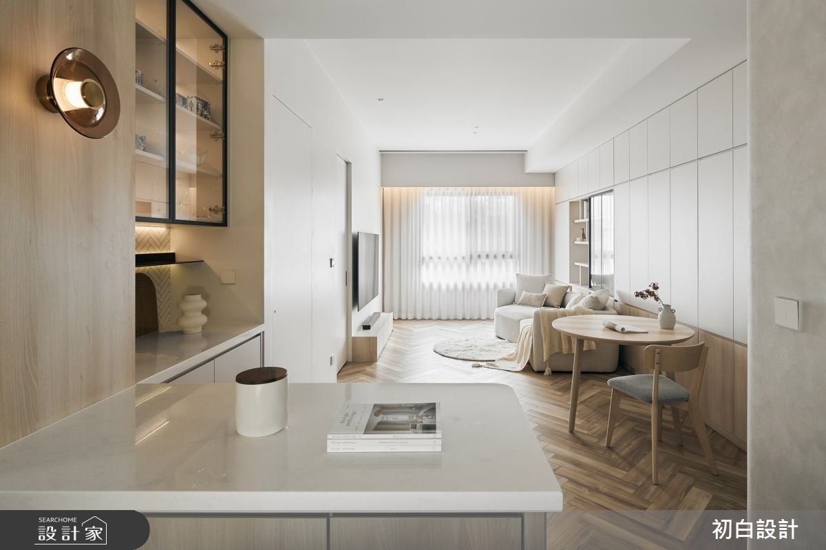 為了讓 15 坪的空間坪數能得到最有效率的運用,空間格局採取1房1廳的簡約規劃,讓公共區域與私人臥房各據一方,創造有條不紊的分明層次;而臥室內也採取簡約清爽的設計,床頭牆上方以弧形曲面修飾樑柱,創造更舒適的睡眠環境。