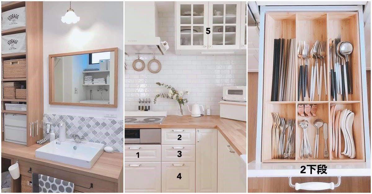 之前老舊系統櫥櫃沒有良好規劃,因此使用起來十分不方便,改造後的廚房空間,系統櫥櫃量身訂製,料理檯面依家人身高規劃,櫃體及抽屜內部細節依照謝宗憲與媽媽的料理習慣規劃收納機能,各類廚房用具都有專屬擺放位置,無論是烹飪中餐或是西餐,拿取更方便,使用起來也更順手!