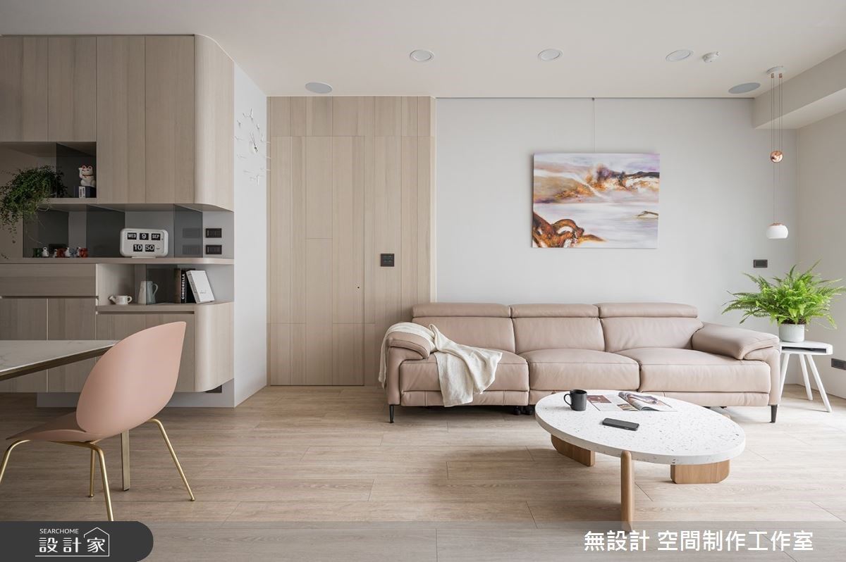 42 坪的空間,以和諧中性的木質色彩打底,並點綴焦點式鮮跳色家具,型塑自然氛圍,同時考量到家有小孩,建材均使用環保、自然、低甲醛,讓家在美觀之餘,也兼具舒適與安心,快跟著小編一起走進來看看吧!