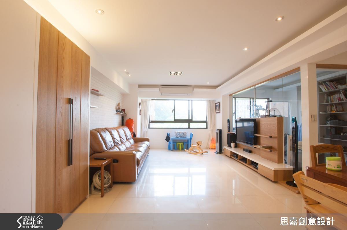客廳面外的窗戶極限加大,將綠意盎然的街景與天光汲引入室,公領域同步採開放式規劃,模糊室內外的疆界;同時融合白色基調與溫暖木質依比例調和,演繹現代北歐風情的閒逸靜好。
