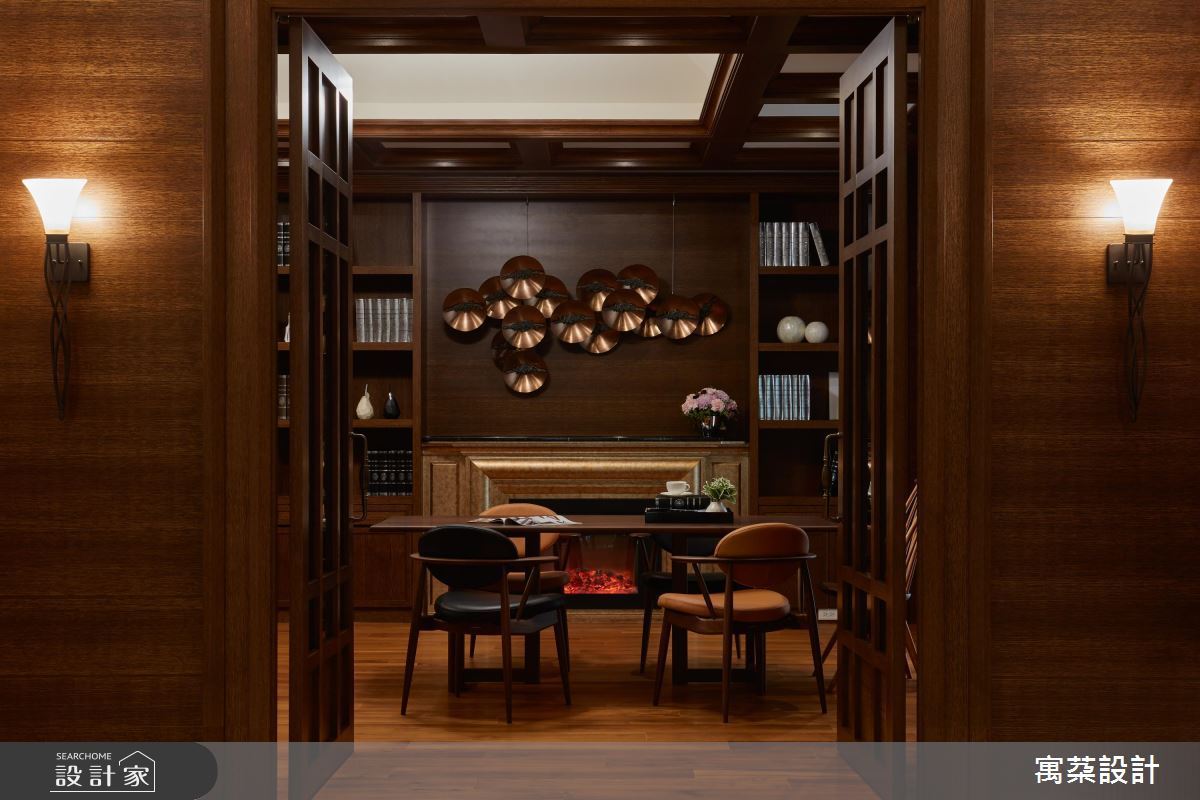簡約沉穩的書房,一踏入就讓人心靜下來,男屋主在此可看書上網、思考沉澱並找尋自我,而書房與餐廳的界定,去除一般傳統制式牆面的做法,改以整片懸空的鈦金櫃呈現,時尚亮眼彷如巨型藝術品,鈦金為較罕見的建材,硬度高,就像男性陽剛的氣息般,精細的鑽石切割面讓光影的折射感與穿透感更強,鈦金櫃本身用料材質就相當特別,不論是櫃體本身,或是擺上一兩件珍藏的藝品,都是居家吸睛的焦點。