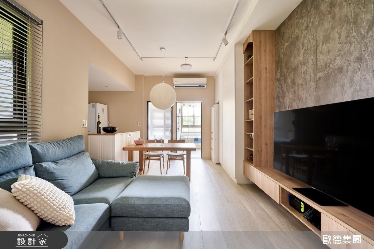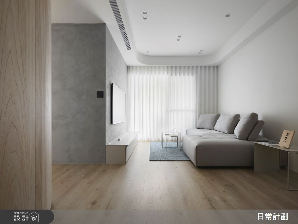 走進室內,客廳背牆採用灰色文化石作為質樸端景,耐磨木地板則加入了溫和的自然木色調,為了使空間更顯放大,公共領域採用開放式設計,取代實體隔間的狹迫感,設計師也利用不同的門片材質表現,自然劃分出空間歸屬,營造豐富的視覺變化。至於收納安排上,沿著玄關向內延伸至餐廚區,以櫃體做出妥善的收納規劃,吧檯上方並設置杯具的收納格,兼具展示收藏功能。主臥室藉由整併格局,額外開拓出屬於更衣和梳妝檯的位置,門片使用通透的玻璃拉門設計,將光度流暢引入室內,同時也讓臥室顯得更加開闊舒適。