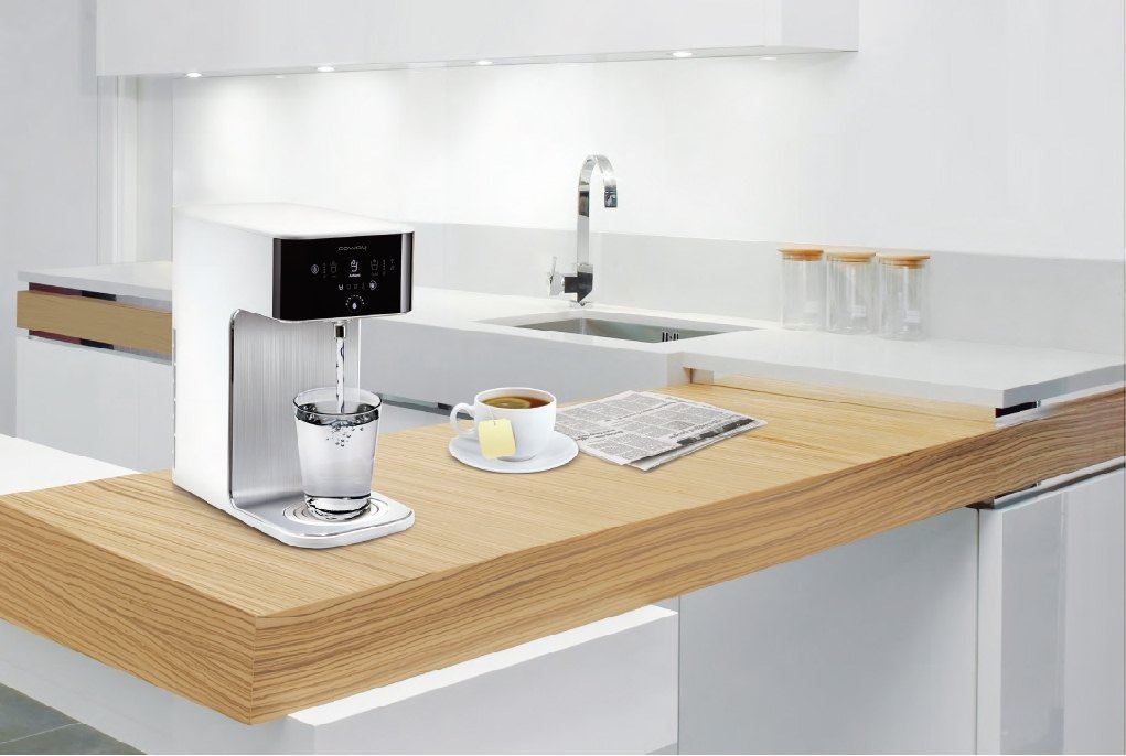 這是男屋主最喜歡的個性化的吧檯區,在設計師搭配時尚造型家電後,有了畫龍點睛的效果,生飲出水機兼具美觀及機能淨化效能,利用奈米濾心技術,將有害物質及重金屬通通都過濾掉了,在保障全家飲水上,純粹的飲水品質,帶給體內好的能量,這是全家人生活品質的中心,也是頂級的享受。