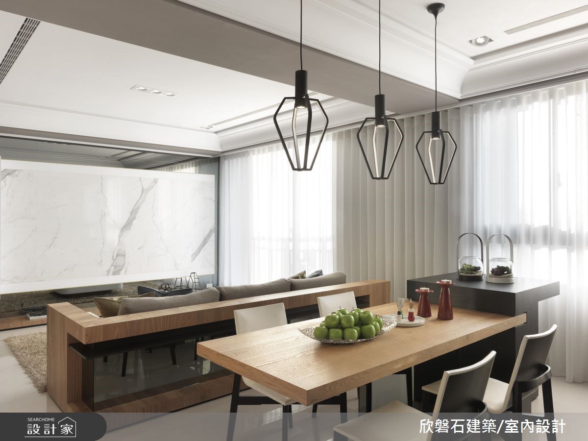 設計師重劃神龕與衛浴位置,接著調整公私領域比例,並打開領域視野,讓家人除了擁有寬裕的私人空間,更能在公共區域享受歡聚之樂。玄關以懸櫃提升視覺輕盈度,並採用易清潔的灰階地坪搭配灰玻,立刻就能打造穿透性十足的入門端景。接著設計師翻轉電視牆面向,讓動線更加順暢、提高家人互動度,巧妙以一扇灰玻拉門隔絕客廳與餐廚空間,隨時皆可依據需求開合。公領域的最大亮點,莫過於由餐廳門框延伸至走廊的不規則光帶,營造前衛中帶點溫馨的氛圍,也成為另類的照明機能。