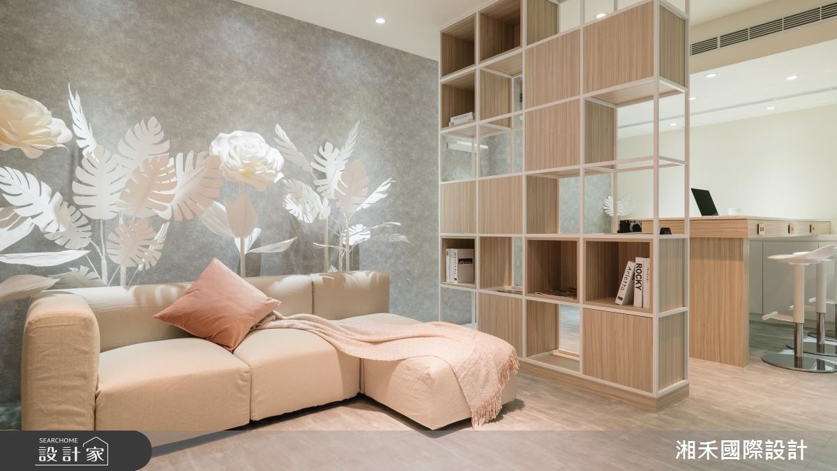 門面採以清玻規劃,令人可輕易望穿店內陳設,室內則呈現開放敞朗的佈局,於天花做出柵欄序列、營造線條之美,並達到延展場域尺度的效果,並將一整面書櫃與電視櫃、電視牆結合為一,加以間接燈光的細緻烘托,展現收納、展示功能兼具的大器主牆,與之對應的是餐桌旁的一整排開放書櫃,依循著物品的造型與特點、打造專屬收納方式,創造細緻唯美的櫃體面貌;臥房床頭藉由石材的自然紋理,融入細膩的線條勾勒,刻劃深具質感的牆面質韻,一旁則加入大容量的更衣機能,除了有如精美藝術展牆的室內鞋櫃,也依循使用者訴求,加入掛桿、抽屜櫃、西褲架等收納細節,打造出最為客製化的使用情境!