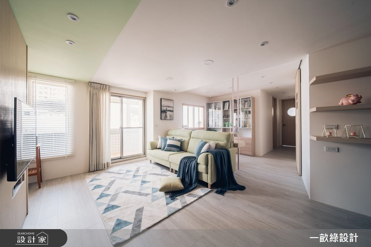 採光本就不差的客廳區域,地面除了用淺色系的超耐磨木地板外,電視牆使用文化石鋪整,透過微微的嵌燈營造出溫暖自然的氣氛。