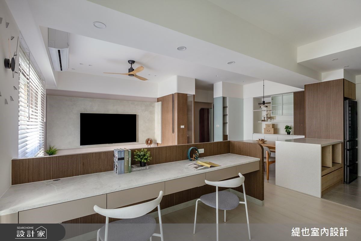 考量到使用者個人習慣,再加上為有限空間做出最好的安排,結合工作桌、餐廳與廚房一氣呵成的空間,將會是最理想的選擇。將三者加以匯整後,此空間成為整體設計重點,藉由造型與選材等元素搭配,突顯特色並賦予功能。