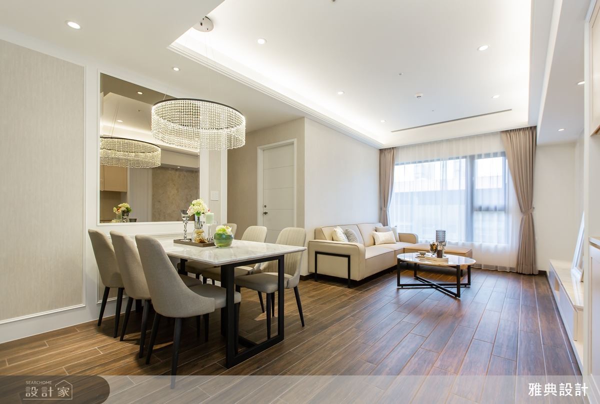 原有玄關空間雖然不大,卻代表了對家的第一印象,林欣璇設計師在玄關牆面包覆壁板,並加入線板的細節設計,另一邊則搭配同色系的櫃子,界定玄關和餐廳的分野,更多了收納的功能性。