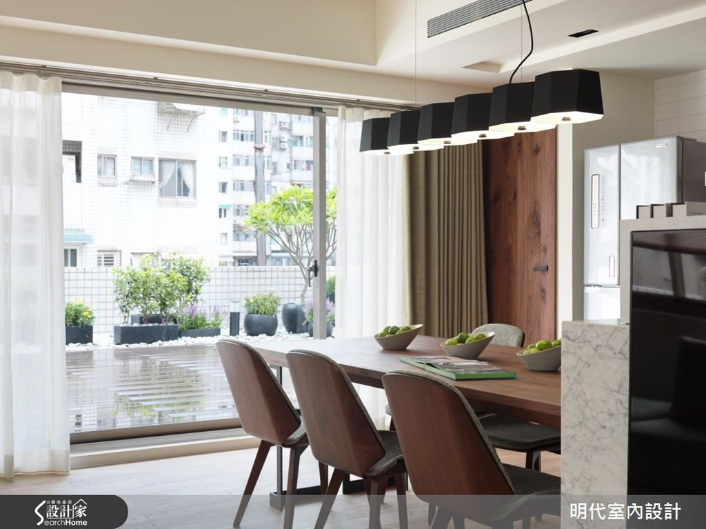 開放式廚房搭配中島備餐檯的設計,加上餐桌和吧檯的串聯,滿足備餐、輕食、宴客等不同使用目的。用餐人數可精簡,也可複雜,生活機能也因為如此周全的規畫而更圓滿。