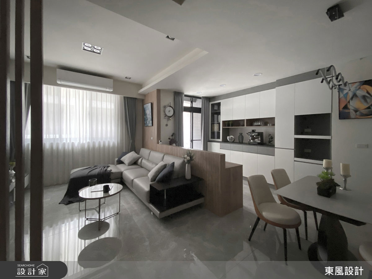 此案前身為毛胚屋,因此設計師針對空間配置及各異材質紋路等搭配投入較多心思,以打造屋主理想中的住宅。除衛浴空間外,其他格局動線全部重整,並以 V 型線條為設計主軸,貫穿 82 坪現代風大宅。