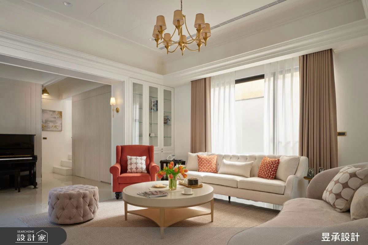 16 坪美式風老屋,原屋況建材老舊、空間光線不足、室內隔間不符使用機能。因此設計師將格局重整,引入自然光線,並搭配白色系放大視覺,使空間明亮、開闊視線。