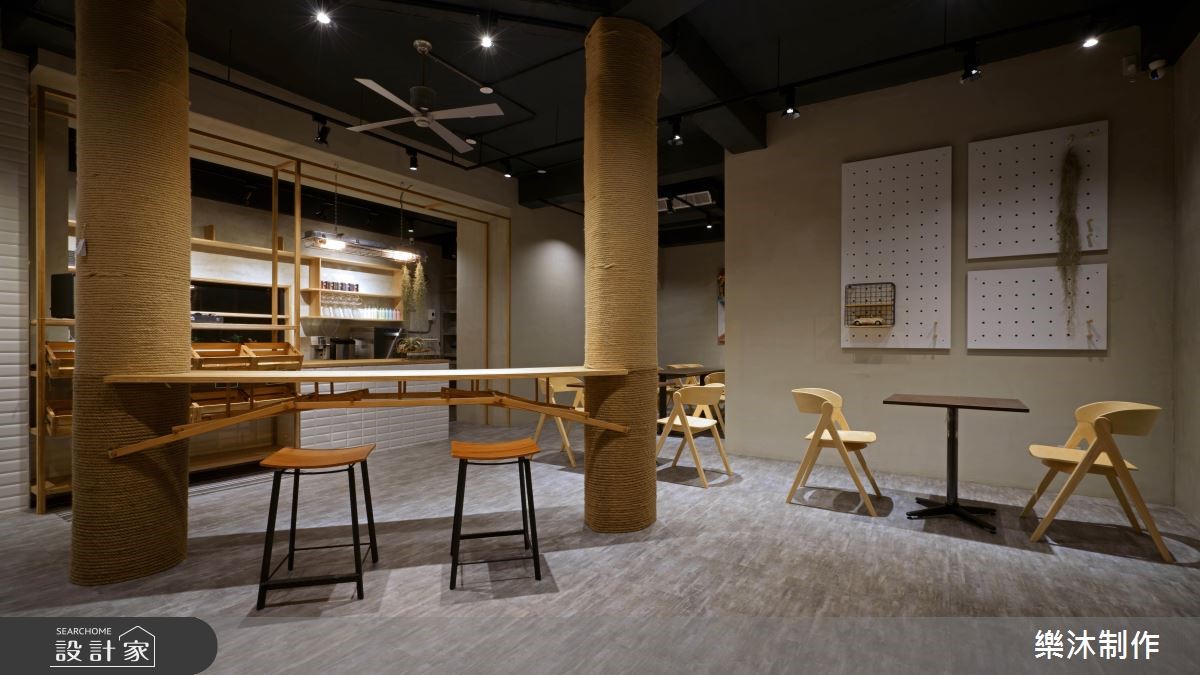 在11坪的商空裡,以橄欖綠替主視覺定調,瀰漫一片有機氣息,烘托「養食」的品牌理念,整體空間藉由木紋與白色調為基底,延伸出自然、純淨的美好感受;為了營造出精品級的精緻體驗,但又不會因為華麗感增加人與商品的距離,局部藉由大理石安排,表面流露的紋理神采烘托大自然的氣韻,再搭佐金屬元素妝點空間、勾勒線條,詮釋出天然提味後的精華;周圍壁面以開放式層架結合LED燈聚焦商品,完美展示出食材的純樸本質;石材打造的櫃台,搭配幾張香檳線條的高腳椅,成為靈感交流的充電站,在柔和光線的映照下,交織出愜意、從容的生活節奏,滿室的精粹豐盈內在。