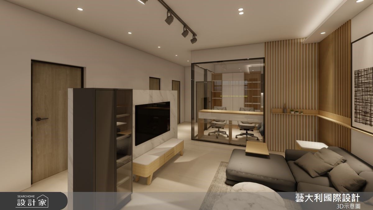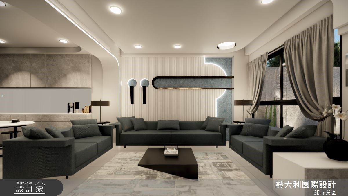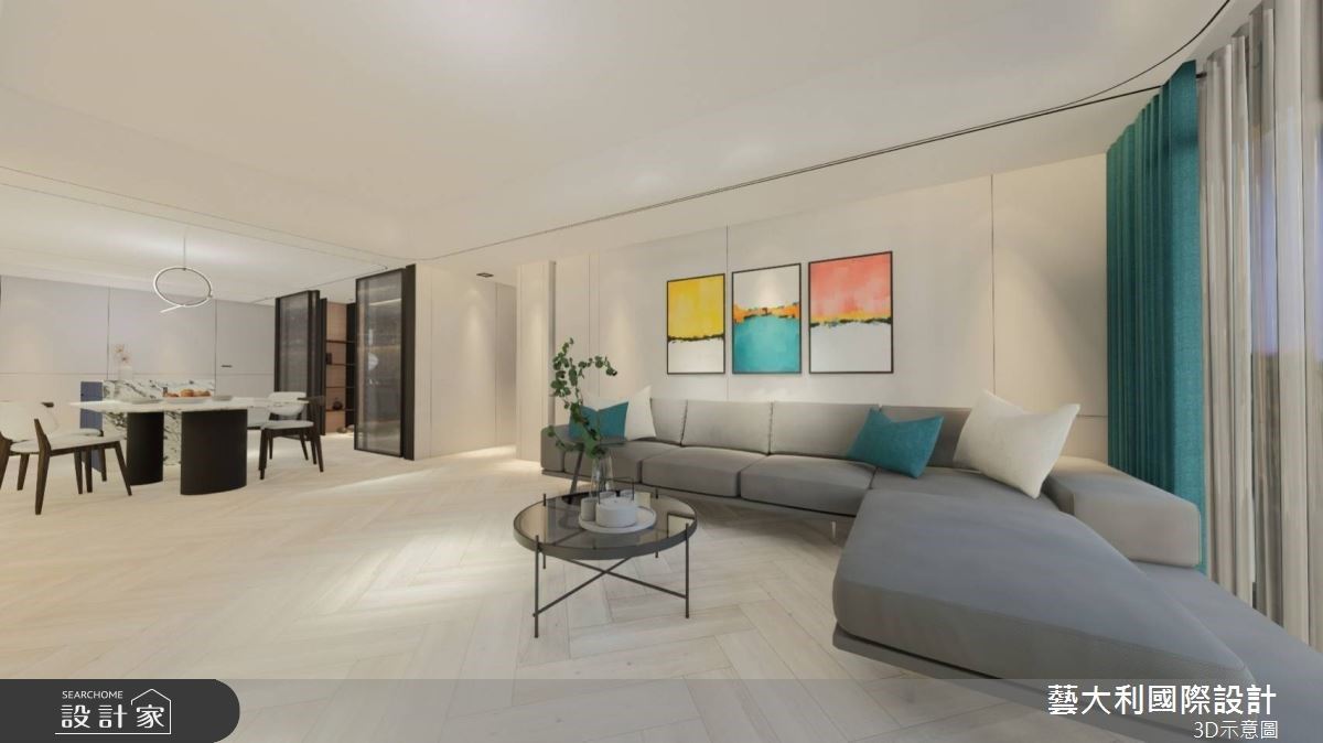 喜歡藝術掛畫替客廳妝點出人文氣息,替空間打造文藝沙龍般的氛圍,同時木質感牆面也讓豪宅多了一份暖意與親近感。