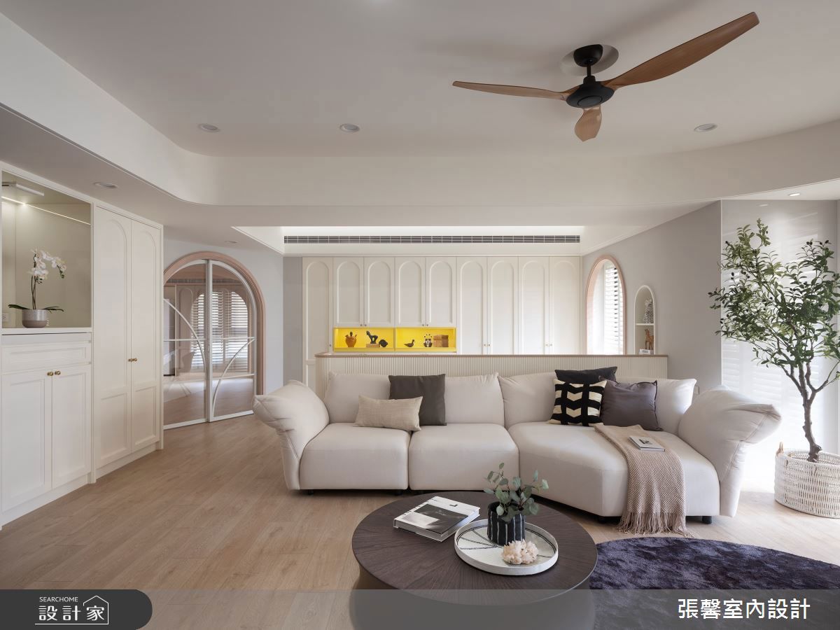 住宅雖以美式風為主調,但刻意簡化了過於繁複的語彙,改以俐落雅致的線板修飾,讓空間感更顯放大輕盈!