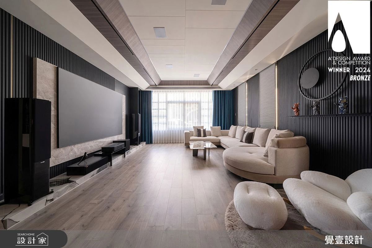 68 坪現代風宅邸,因為有佛堂的需求,且須符合紅字的尺寸,所以給予設計團隊連 0.5 公分都必須錙銖必較的考驗,而設計團隊在不壓迫到公共空間的情況下,滿足了三代同堂的溫暖笑容。