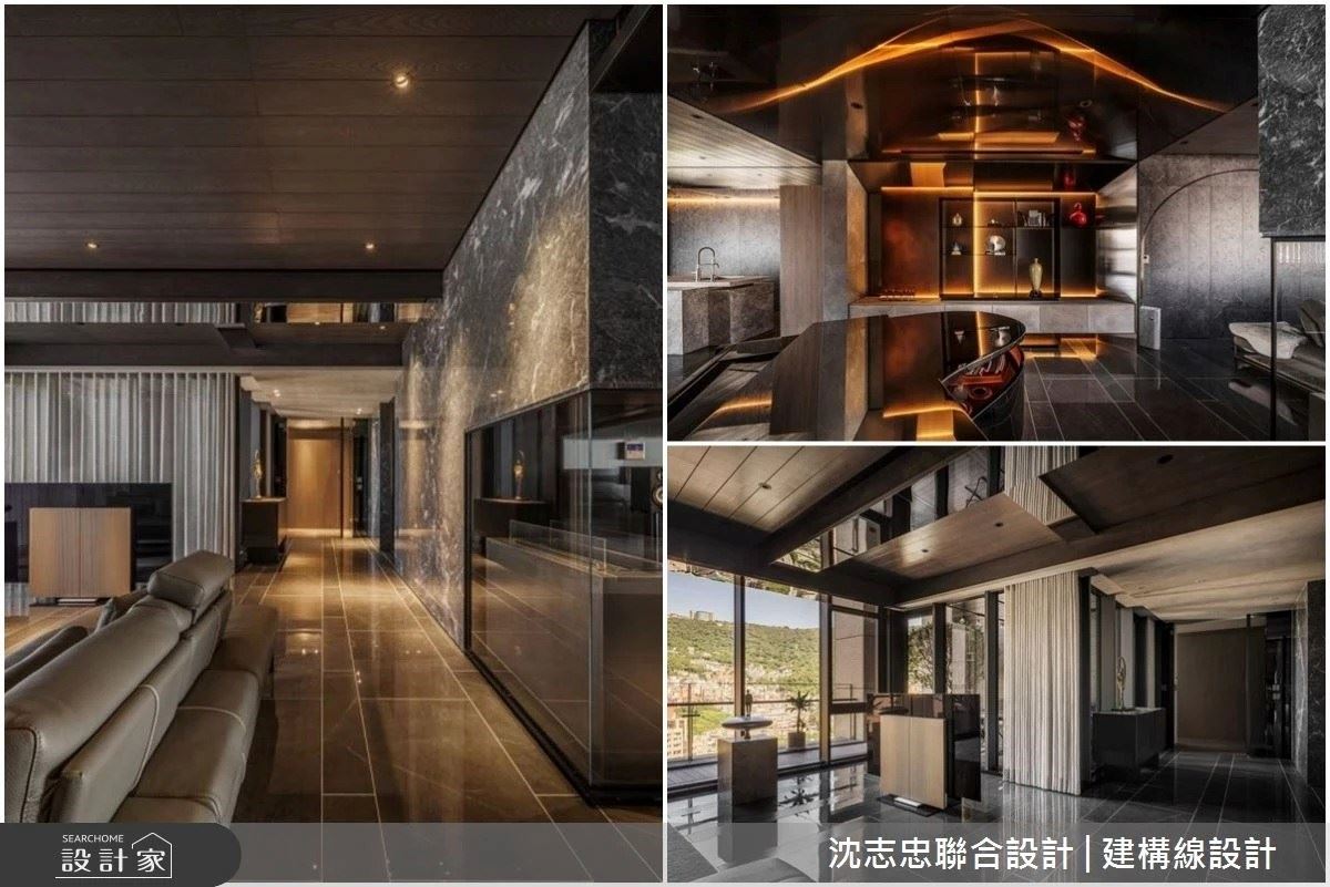 為了增進全家人的互動性,客餐廳與和室作為完全開放式空間,讓公領域形成三角型互動場域,展現高密度的生活情境;客廳與和室的展示吊架,採用鐵件與實木提升質感,並供屋主擺放自有的收藏品,增添藝術氣息;由於屋主有品酒及收集酒的喜好,餐廳特意規劃玻璃展示櫃,也成為另類的精品區;主臥以飯店式風格鋪陳,睡眠區刻意架高地板,放置兩張大床,讓大人小孩可以一同休息,並增加空間層次感;孝親房的格柵木質床頭背牆,鋪敘出溫潤感,並將書桌規劃至臨窗邊,提高生活機能。