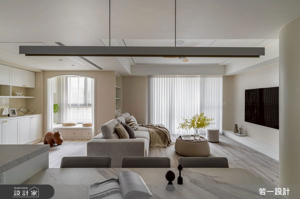 1 人生活恰恰好的空間,想要完美發揮坪效,格局配置就得拿捏更加精準。公領域中,設計師秉除隔屏的使用,還原室內應有的寬度,視野被打開了,空間受限的問題也迎刃而解。接著再利用餐桌鋪排的位置、牆面異材質的使用,劃分場域,即使沒有隔間,也能擁有獨立感。