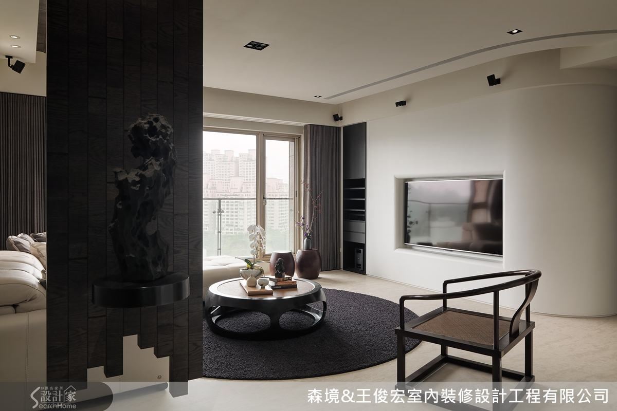 客廳區域,除了大膽地將男主人收藏的落地式家庭劇院作為裝置藝術展露,更選擇在沙發後牆處,規劃為展示精品的端景區,同樣運用不鏽鋼、鍍鈦金屬等 5~6 種異材質拼接,呈現多元層次感。更重要的是,這個區域成為屋主夫妻鍾愛的開放式展示櫃,可根據心情、購入的不同藏品的時機恣意更換變動,既為私宅專屬的展示櫥窗,絕不疏漏最前線的時尚潮流,同時更成為空間中的精彩端景。