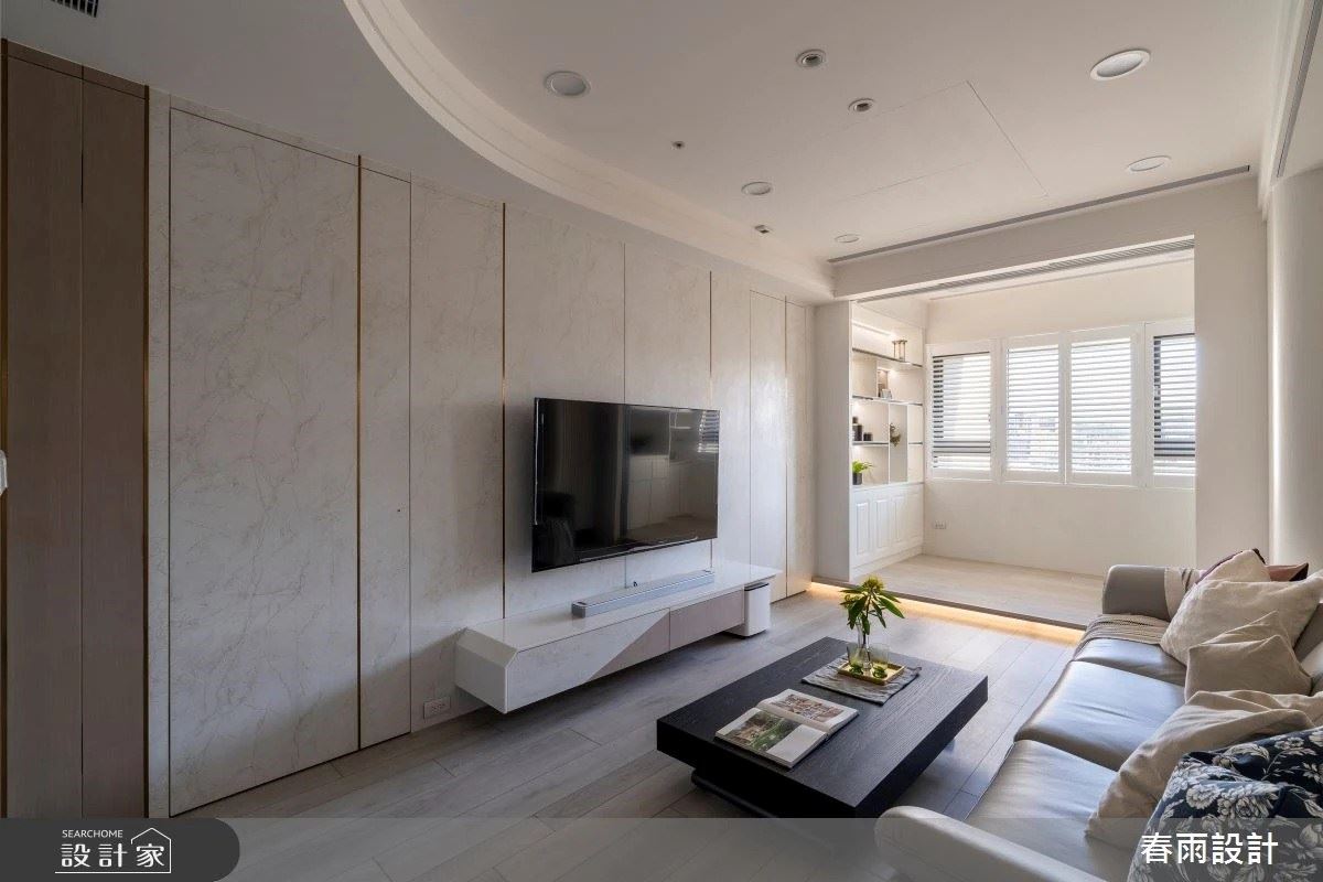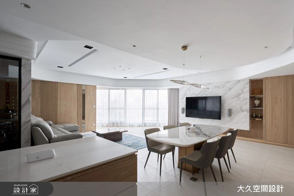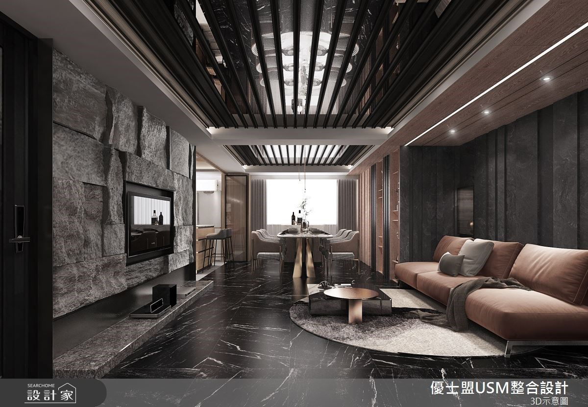 迎賓入口以相似的灰,不同的建材用料,表現一致的個性態度;收納櫃以中間鏤空作法,減輕視覺重量並與室內串聯。客廳電視牆,採用灰質文化石鋪排,彰顯個性十足的設計風格,櫃體及家具則透過不同色調的鋼刷木皮表現層次。餐廚規劃悉心著墨,以一字長型中島輕食料理台,作為客、餐之間的中樞地帶,擴展了公領域範圍,與朋友歡聚派對時刻機能多用,客、餐零距離熱絡氣氛!另外,在鄰近陽台旁,備有熱炒獨立廚房,阻斷油煙蔓延至室內。