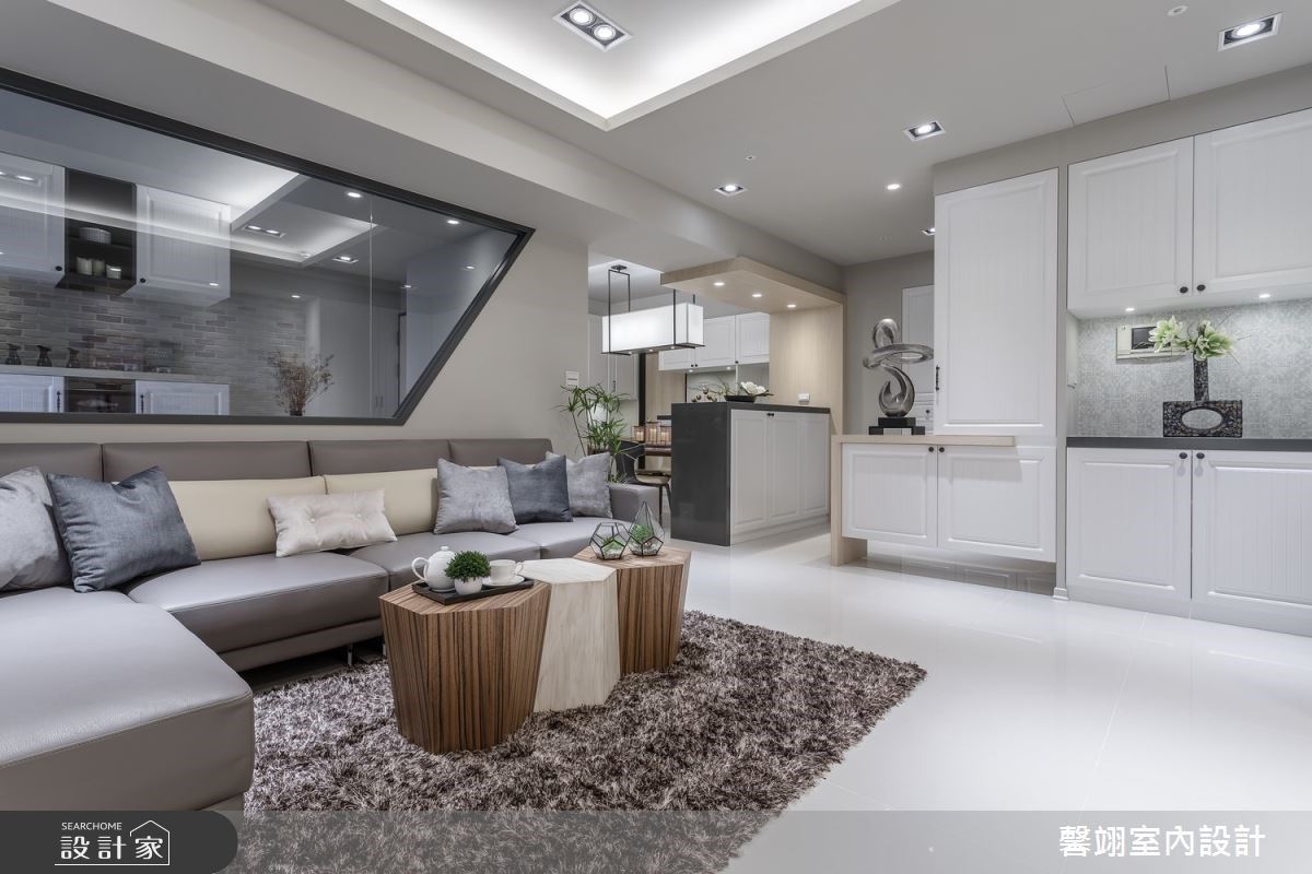 客廳是家人互動的重要核心,簡單的沙發與擺設,給一家五口更多的相處空間,也能與貓咪融洽地生活。