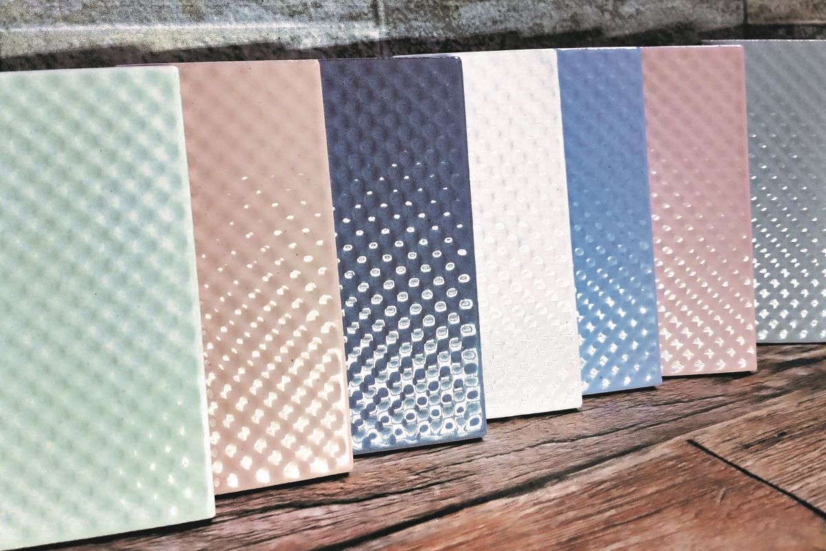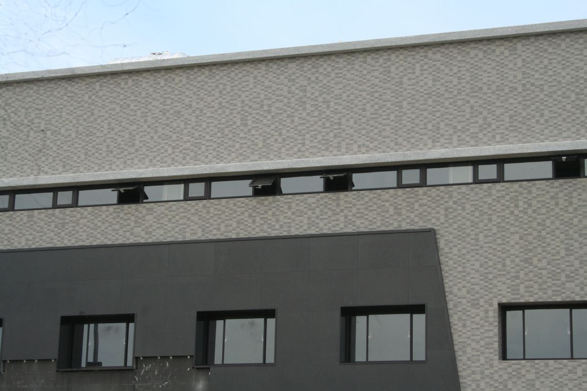 至於產品面貌和色系規劃上,有別於過往採單一模面貼才,升級為 3 種模面交織組合貼才,如此厚工在於營造出自然的清新感,讓視角隨著光影的流竄,形成看似相異的色澤層次。色系則以不退流行的經典:白、灰、黑三款,除了築體外觀使用外,也便於室內居家如玄關、電視牆、浴室使用,因產品採 3:7 交丁貼才(1 才尺寸含溝縫為 350×300㎜),所以可隨設計需求做出造型,如:圓型、弧型、轉折或顏色串接交錯等效果,以符合商業空間的氛圍營造。