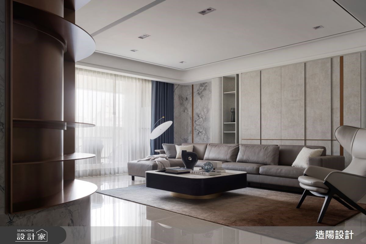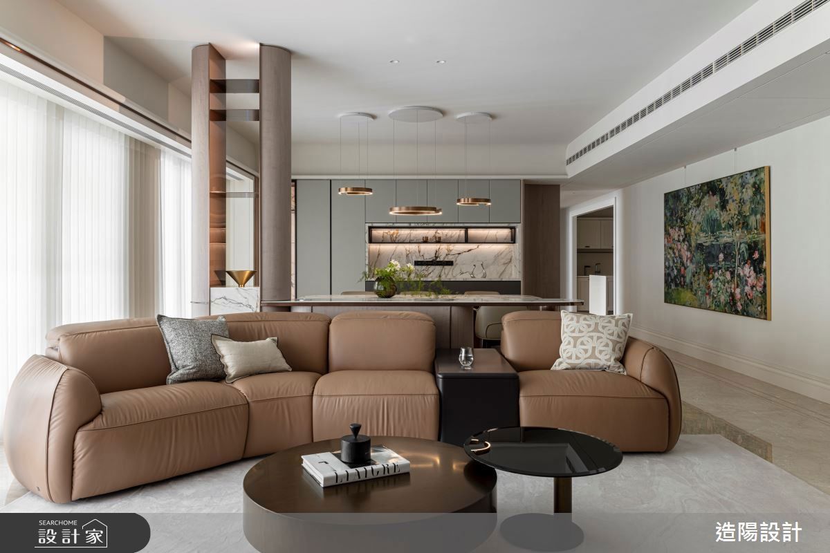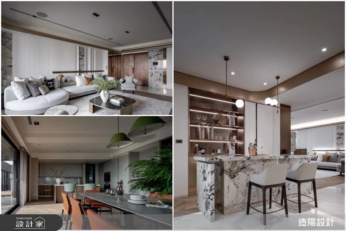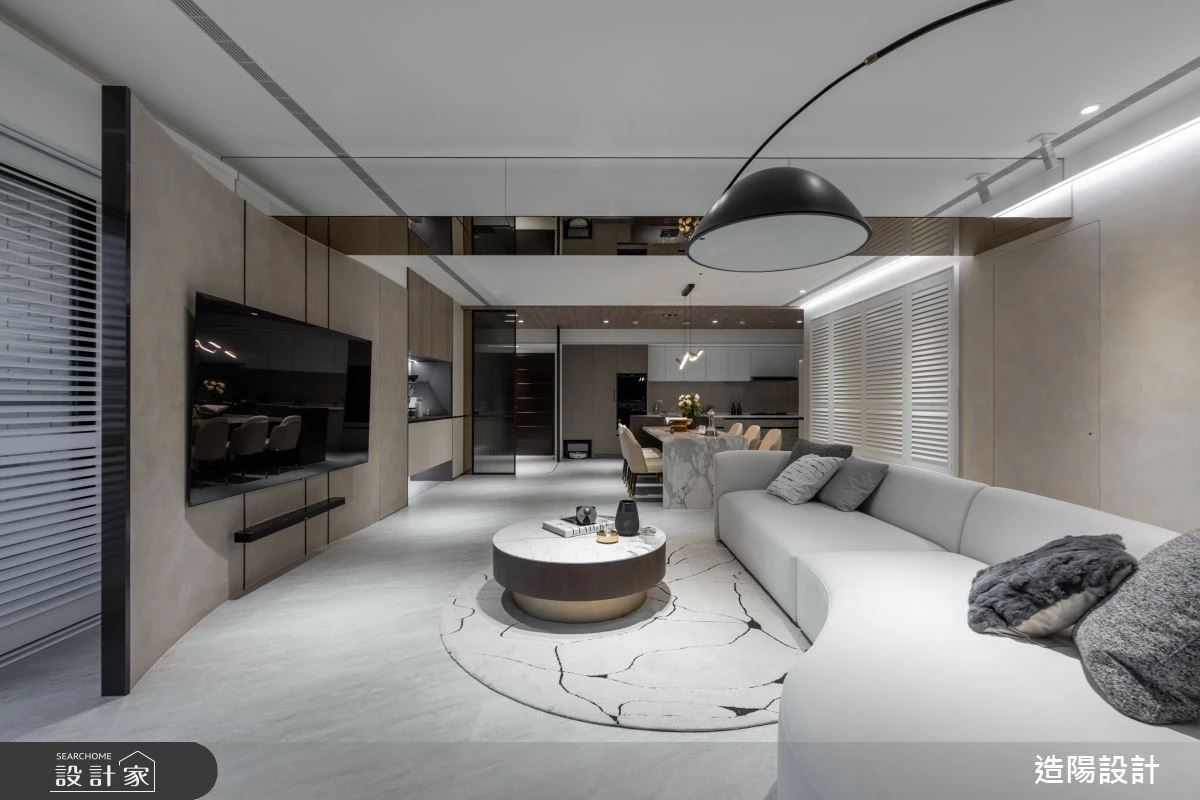 28坪的新成屋以現代風格定位全屋的規劃。為將完整的活動空間留給家人,客廳、餐廳、廚房、書房等公共領域,透過開放式格局和清玻璃,製造通透寬敞的效果,在建材的使用上採用淺色石材與鏡面映,輔以暖色木皮元素作為主要設定,增添場域明亮度;不時融入的造型分割、塊體的創意規劃,提升視覺層次也呼應空間裡的線條表現,營造出清新時尚的幾何美學。
