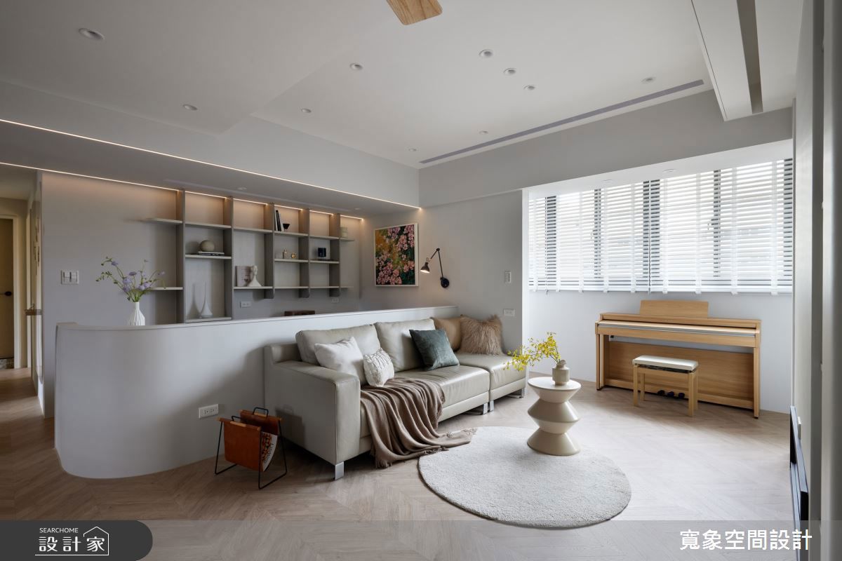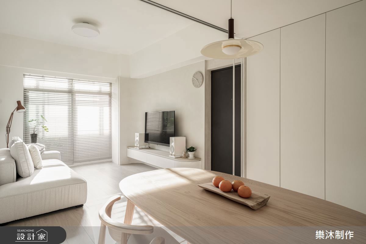 35 坪老屋翻修後,即將成為 6 人同住的三代同堂宅,因此空間以耐看簡練的純淨白色作為北歐風基底,適度留白卻不顯空蕩,反而凸顯了木質家具、皮質沙發、開放式木質收納櫃等家具特色,即便生活中僅有木與白兩色點綴,也能打造舒服有層次的生活美感。
