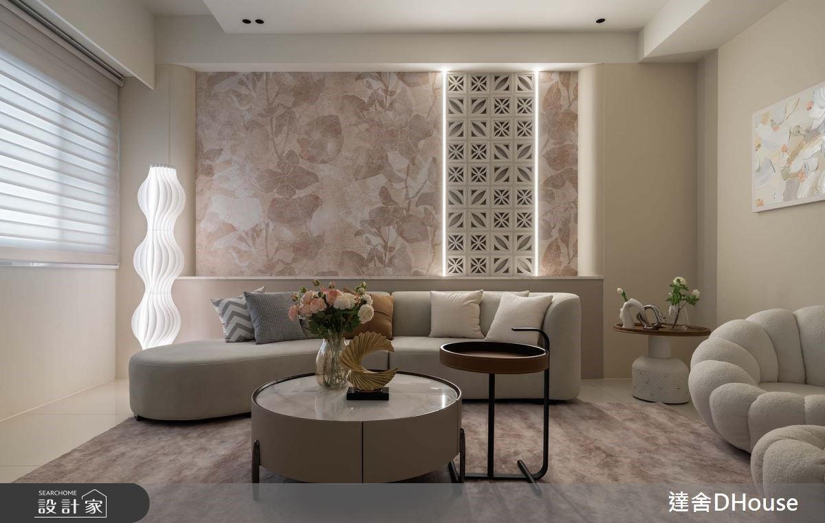 主臥空間則揉合了藍色系牆面,轉化及突顯場域的層次變化,舒適、簡約的家具陳設,通過質材、布藝的配搭,給人不失精緻度的放鬆氛圍;小孩房加入了童趣元素,像是彩繪壁面及房子形狀的鏤空收納櫃,兼顧機能與主題。