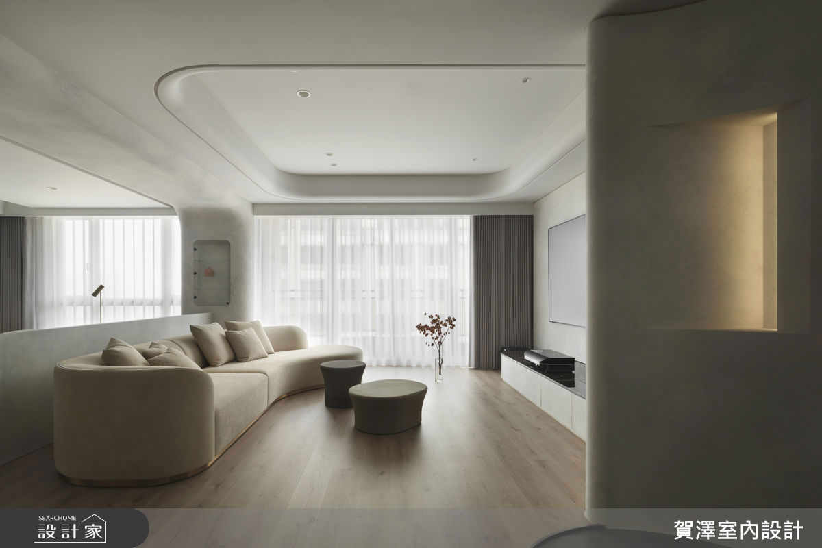 百坪大宅裡,透過俐落的現代風格描繪,且將城市風景延攬入室,展現開闊器度;半開放大型廚房滿足夢想中三五好友共聚的天堂,以及收納細節的規劃,收藏起一家五口的非凡品味與點滴回憶。
