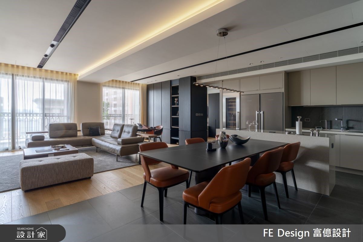 56 坪現代風居家,設計師藉由客廳、餐廳的大面開窗,將山林綠地的景觀優勢延攬入室,把內外界線縮到最小,讓大自然生息充分引進室內,搭配敞朗格局、流暢動線、自然建材等演繹,拉近居住者、空間、環境之間的連結,快跟著小編一起來看看吧!