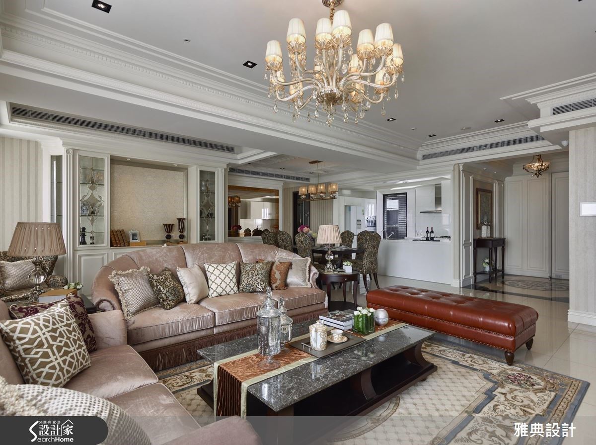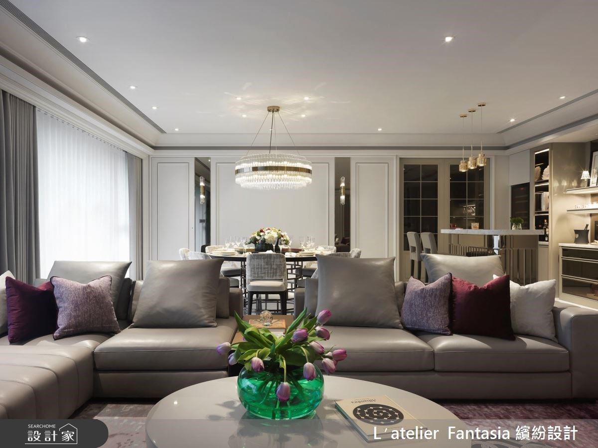 格局分配方面,將起居、休憩角落安排在靠窗的採光較佳處,並接收美好的室外景觀,使生活與綠意隨時共居;整體選用白底展現空間寬廣度,在餐區安排一道灰鏡立面,形成延伸的視線感受,電視牆則採以銀狐大理石鋪敘,於下方加入鍍鈦金屬壁龕,沉著而不失氣度,客廳書牆則巧思做出立體折線造型,在轉折進退中玩出線條創意;家具安排上,則陳列湛藍的流線沙發,與垂墜的黃銅吊燈形成呼應,餐區的紳藍櫃體鑲上了紅銅細節收邊,映出相襯的折衷美學;臥室展現光潔輕盈的低彩度調性,運用當代金屬線條增色添綴,流露充滿質感的文藝氣息!