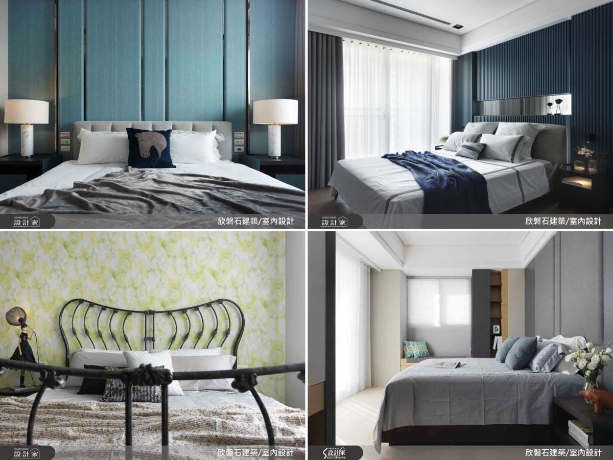 02. 材質:軟性的材質和舒適的面料,有效營造出柔和舒適的環境,可利用在家具、寢具、窗簾、繃布的床頭背板等,提升觸覺和視覺的層次。