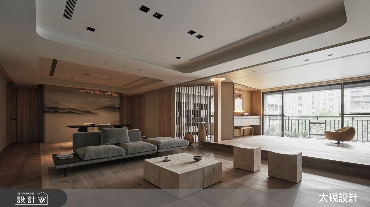 面對忙碌的生活,能夠回家歇息,享受最舒服、療癒人心的空間,是一大幸福。此案透過人文禪風做為風格設定,開放的公領域裡,透過引入戶外綠意的景緻,與室內的木紋肌理調和出最自然的生命力;局部利用藝術字畫的點綴,挹注東方美學的色彩。