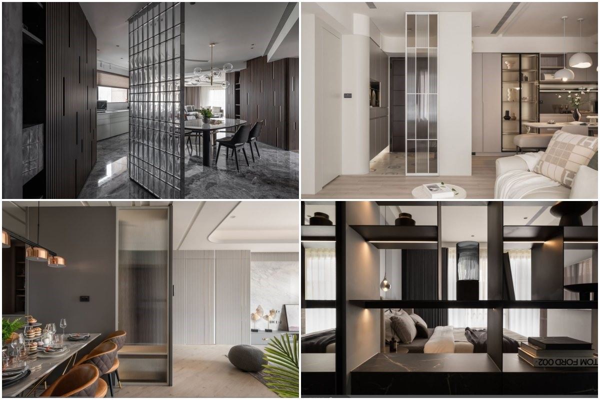 面對生活空間變小,有些設計師會以開門見山的方式做玄關規劃,避免傳統玄關屏風或玄關櫃壓縮空間,但新式的屏風隔間跳脫儲物收納為主的設計,利用玻璃、格柵、鐵件等異材質結合,並搭配各種分割切線凸顯屏風造型,反而能在屏風隔間的傳統阻隔、劃分的意義上延伸出設計感,不落地搭配通透感設計也能化解狹小玄關帶來的壓迫感。