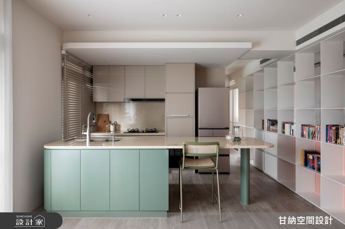 38坪混搭風住宅,以大片落地窗迎來暖心日光,形塑通透爽朗感,並以莫藍迪色系與木質交織,形塑溫柔雋永的詩意美感,同時加入鏡面、鐵件等巧思妝點,描繪獨一無二的迷人之姿。