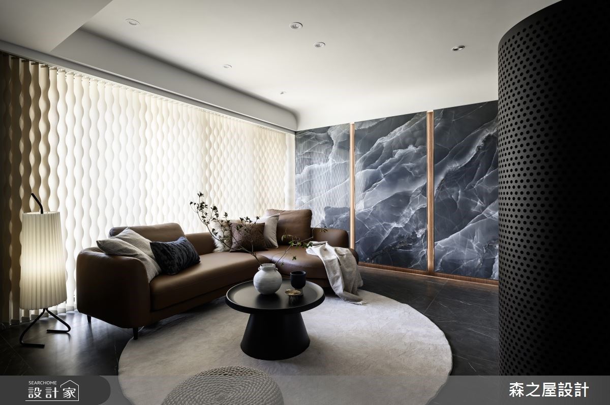 室內空間採用石材與金屬勾勒視覺亮點,透過大理石材營造大器理性的調性,再搭配鋼刷木皮適當加入溫煦感,讓空間氛圍能在奢華與舒適中,取得絕妙的平衡,在公共領域的牆面加入線性切割,客廳區的沙發背牆透過間接式光源,增加整體層次感,餐廳區的牆面則帶入鋼刷實木的溫潤,激盪空間流動感,在格局規劃上,以L型的開放式客餐廳為設計亮點,讓一家人的生活動線暢行無阻。