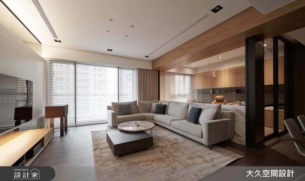 玄關區域,巧妙藉由格柵語彙延續,串聯入口與客廳區域,並呼應電視牆旁側的懸吊櫃體,牆體則採用仿清水模材質鋪敘,展現簡約質樸的底蘊;客廳後方安排書房,運用大面積玻璃打造立面,創造場域的穿透性,並達成視覺放大的效果,房內書櫃以虛實交錯的造型呈現,收納與展示意味兼具,再穿插格柵語彙呼應主題,挹注自然的日式底蘊;餐廳陳列簡單的桌椅,並規劃備品餐櫃,供屋主收納與陳列展示品,同時留有領域之間的順暢動線,讓生活充滿自在餘裕!