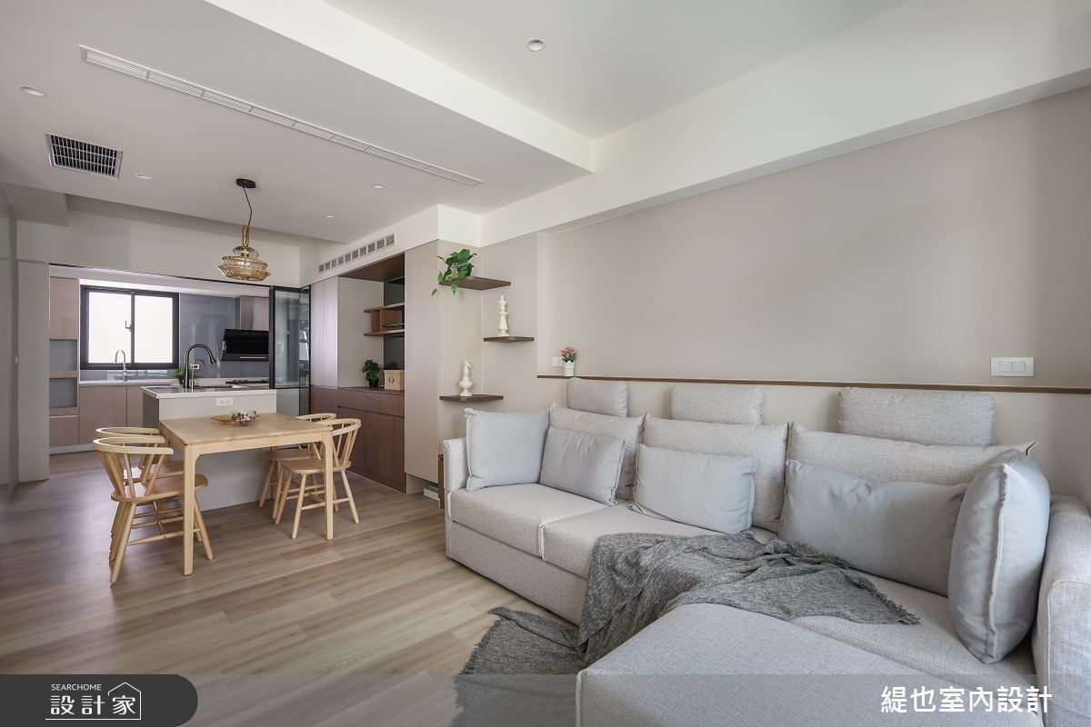 客餐廳被安排於同一軸線上,溫潤的人字拼木地板向落地窗漸漸展開,串聯戶外庭院的鬱鬱蔥蔥,迎來美好的自然風光。客廳電視牆以深色的格柵元素,作為空間的視覺重心,散發濃厚的人文禪意,與現代俐落的皮革沙發,形成風格上的衝突美感,象徵中西合璧的空間內涵。