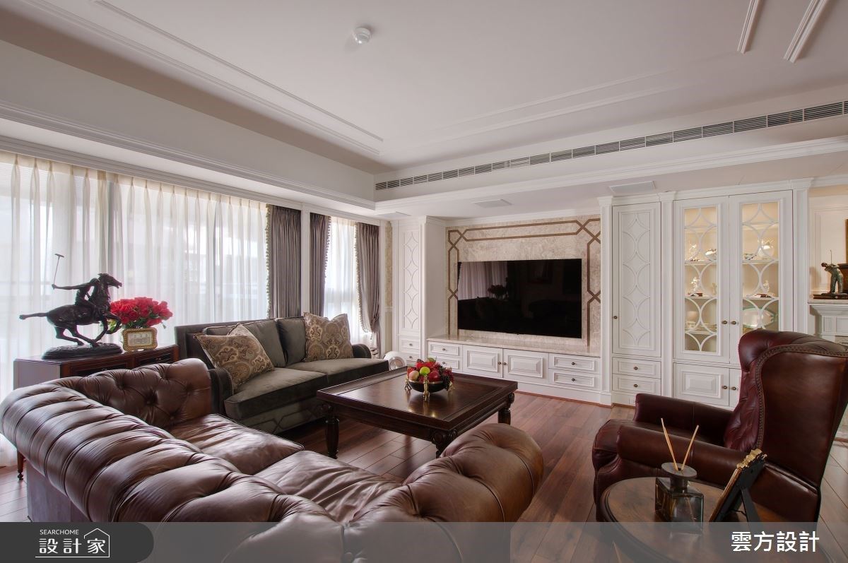 新古典風為主軸的別墅空間,公領域採開放設計,展現挑高的屋況,坪數該有的寬敞視野被釋放出來,兩層樓能相互對視與對話。設計手法也因應此格局,予以由一樓到二樓的連續性設計,創造生活美學的一致性。