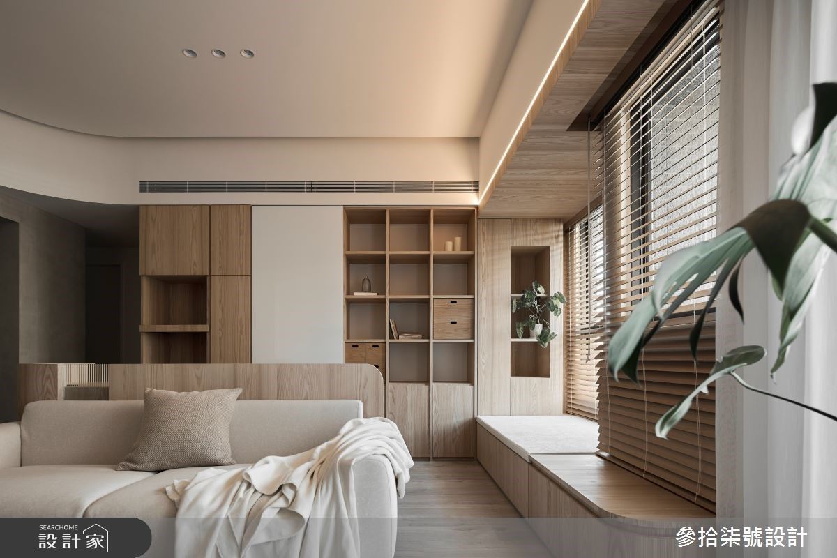 打造出日式的溫馨家庭氛圍,設計師大量使用木紋建材,整個家縈繞著木香。客廳牆面選用水泥粉光呈現冷色調,完美調劑淺色木調的厚重感。以專屬臺式復古鐵窗花紋建材作為客廳與玄關的簡單區隔,巧妙點亮臺式的道地。開放式的動向延伸視覺寬敞感,盡頭的半開放式廚房以玻璃拉門作為簡單區隔,無論是充滿感情的臺式熱炒亦或是寧靜出韻味的日式茶點,皆可將聲響完美隔絕。廚房以木紋花磚點綴石紋系統廚具,讓下廚也充滿風味。多功能空間以木柵拉門緊接廚房,延續溫馨風格外,也將空間完整區隔,練琴閱書兩兼得。浴室牆面則選用水泥粉光以及淺色磚營造出俐落、柔和感。臥室選用冷色調粉刷牆面調和深色木紋系統櫃以及充滿韻味的木百葉窗。