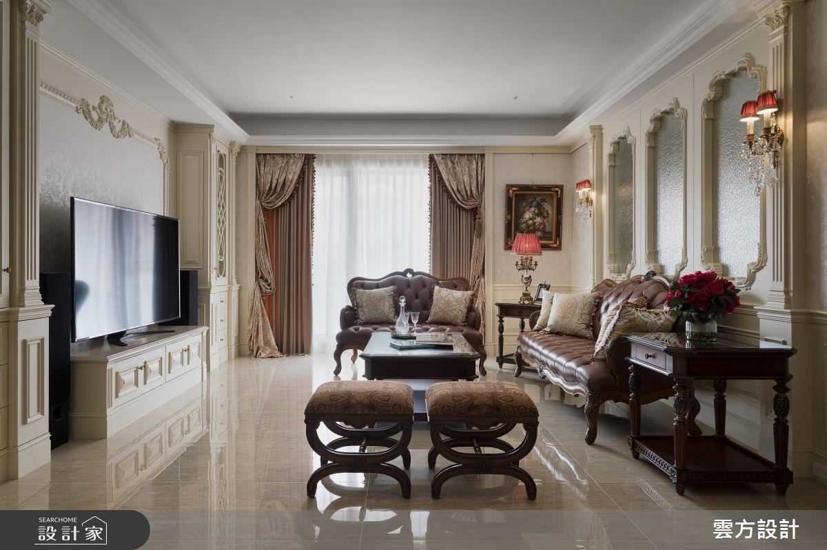 38坪新古典小豪宅,是時尚女主人的迷人新居。設計團隊將超現實主義畫家雷內・馬格麗特的〈戴黑帽的男人〉作為靈感,將看與被看的差異性融入空間,並注入優雅的裸灰色系,運用美式線板、玻璃門書寫迷人韻味,十足反映屋主的人文素養和藝術思維。